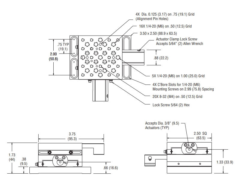 XY线性位移台,1.0英寸行程, 8-32和1/4-20,真空,左手系