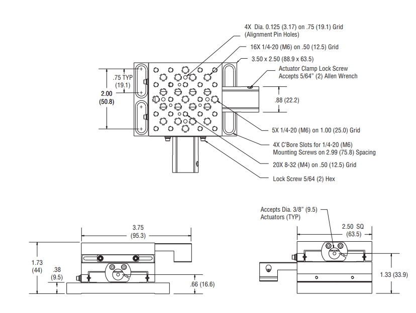 XY线性位移台,25.4毫米行程,M4和M6,真空,左手系