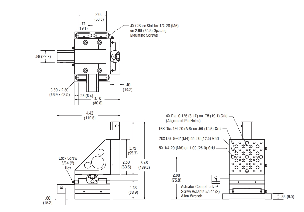 XYZ线性位移台,交叉滚子,25.4 毫米行程,M4,M6,左手系