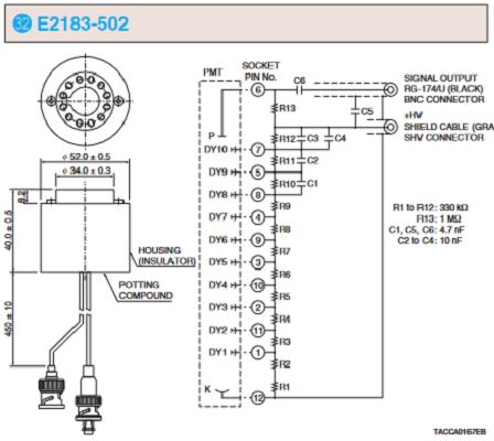 HAMAMATSU滨松 D型插座组件 E2183-502 详细参数 适用的 PMT 38 mm 端窗型 电源电压极性 + [Max. Rating] 绝缘电压(机箱 - 引脚) 2000 V [Max. Rating] 电源电压 1750 V [Max. Rating] 分压器电流 0.45 mA 总分压器电阻 3.96 MΩ 备注 带连接器 用于闪烁计数 0755 84689265 手机/微信:18320955412 QQ:2423332841 邮箱:2423332841@qq.com