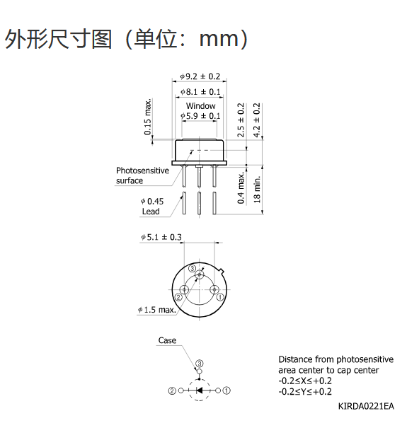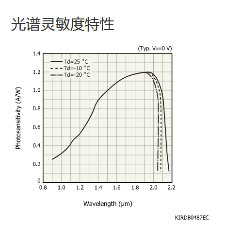 典型值 Tc = -25°C,除非另有说明,感光灵敏度:λ = λp,暗电流:VR = 0.5 V,截止频率:VR = 0 V,RL = 50 Ω,结电容:VR = 0 V,f = 1 MHz |