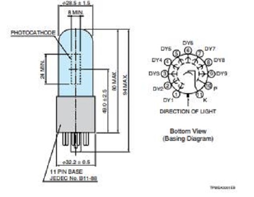 HAMAMATSU滨松 侧面式光电倍增管 R4220 详细参数 类型 侧面式 管子尺寸 28 mm 直径 光阴极面区域形状 正方形 光阴极面区域尺寸 8 x 24 mm 波长(短) 185 nm 波长(长) 710 nm 波长(峰值) 410 nm 光谱灵敏度特性曲线代码 456U 光阴极面材料 低噪声双碱 窗材 紫外玻璃 倍增器电极结构 圆形罩壳 倍增器电极级数 9 [Max. Rating] 阳极至阴极电压 1250 V [Max. Rating] 平均阳极电流 0.1 mA 阳极至阴极电源电压 1000 V [Cathode] 亮度灵敏度最小值 80 μA/lm [Cathode] 亮度灵敏度典型值 100 μA/lm [Cathode] 蓝敏度指数 (CS 5-58) 典型值 8 [Cathode] 辐射灵敏度典型值 70 mA/W [Anode] 亮度灵敏度最小值 1000 A/lm [Anode] 亮度灵敏度典型值 1200 A/lm [Anode] 辐射灵敏度典型值 8.4 x 105 A/W [Anode] 增益率典型值 1.2 x 107 [Anode] 暗电流(30 分钟后) 典型值 0.2 nA [Anode] 暗电流(30 分钟后) 最大值 2 nA [Time Response] 上升时间典型值 2.2 ns [Time Response] 渡越时间典型值 22 ns &n...