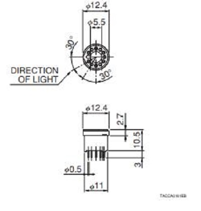 HAMAMATSU滨松 侧面式光电倍增管 R6353 详细参数 类型 侧面式 管子尺寸 13 mm 直径 光阴极面区域形状 正方形 光阴极面区域尺寸 4 x 13 mm 波长(短) 185 nm 波长(长) 680 nm 波长(峰值) 400 nm 光谱灵敏度特性曲线代码 456U 光阴极面材料 低噪声双碱 窗材 紫外玻璃 倍增器电极结构 圆形罩壳 倍增器电极级数 9 [Max. Rating] 阳极至阴极电压 1250 V [Max. Rating] 平均阳极电流 0.01 mA 阳极至阴极电源电压 1000 V [Cathode] 亮度灵敏度最小值 30 μA/lm [Cathode] 亮度灵敏度典型值 70 μA/lm [Cathode] 蓝敏度指数 (CS 5-58) 典型值 6.5 [Cathode] 辐射灵敏度典型值 65 mA/W [Anode] 亮度灵敏度最小值 100 A/lm [Anode] 亮度灵敏度典型值 400 A/lm [Anode] 辐射灵敏度典型值 3.7 x 105 A/W [Anode] 增益率典型值 5.7 x 106 [Anode] 暗电流(30 分钟后) 典型值 0.1 nA [Anode] 暗电流(30 分钟后) 最大值 2 nA [Time Response] 上升时间典型值 1.4 ns [Time Response] 渡越时间典型值 15 ns &n...