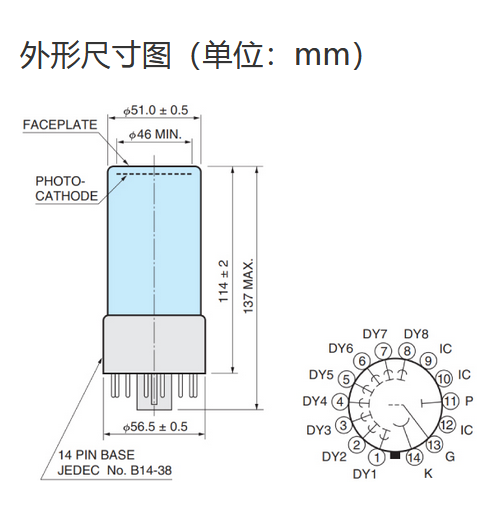 光阴极面区域尺寸 |