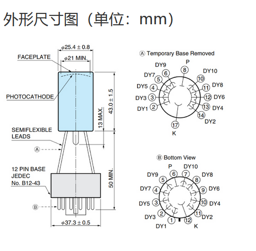 光阴极面区域尺寸 |