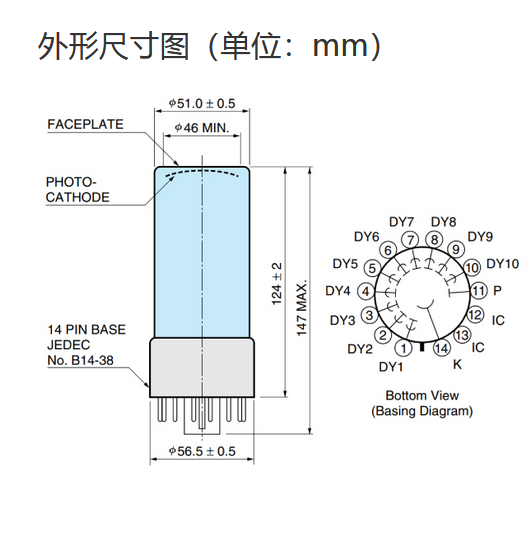 光阴极面区域尺寸 |