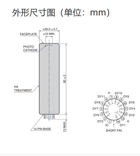 光阴极面区域尺寸 |