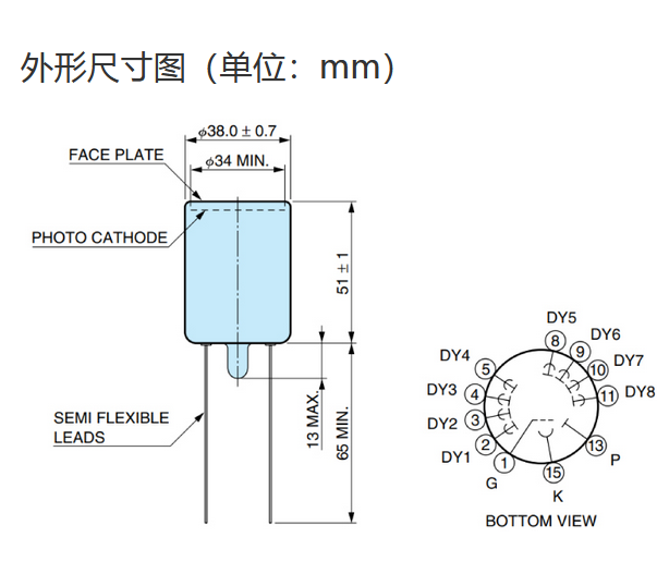光阴极面区域尺寸 |