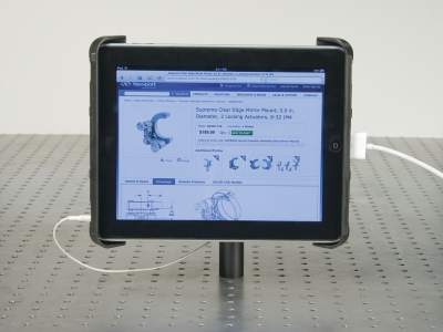 Newport提供了完全可调、节省空间的平板电脑支架M-TDM-L,迎合平板计算进入光电实验室。依靠其弹簧加载托盘,我们的平板电脑支架非常适合安装最流行的平板电脑(包括 iPad、TouchPad、Galaxy Tab 等)。适合任何高度在 216 至 272 mm 、宽度小于 195 mm 和厚度小于 14 mm 尺寸的平板电脑。这种安装多功能性还支持安装带保护套的平板电脑,因此不必将其取下。它可以安装到任何具有M6 螺纹孔的光学平台或面包板上,并且使用它的双球窝臂,可以轻松地定位于任何方向(包括纵向或横向)。一个简单的旋钮即可将其牢固地锁定到位。TDM-L 还具有访问功能,支持使用相机记录视频、拍摄照片或通过 Skype 或 FaceTime 远程观察。另一个访问功能可使平板电脑在支架中充电或同步。成为您团队的创新者,并且现在就使用新的 TDM-L 升级到未来的实验室。