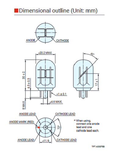 HAMAMATSU滨松 放电火焰传感器 R12257 详细参数 光谱灵敏度特性(短) 185 nm 光谱灵敏度特性(长) 300 nm 电极材料 Mo 重量 5 g [Maximum Rating] 电源电压(直流) 425 V [Maximum Rating] 平均放电电流 10 mA [Maximum Rating] 峰值电流 200 mA [Maximum Rating] 工作环境温度 -40 至 +125 °C 放电启动电压(直流) 240 V 放电维持电压(直流) 170 V 灵敏度典型值 1200 min-1 背景最大值 10 min-1 [Recommended Operating Parameters] 电源电压(直流) 310±25 V [Recommended Operating Parameters] 平均放电电流 2 mA [Recommended Operating Parameters] 最短淬灭时间 1 ms 合适的插座(单独出售) E678-9C 0755 84689265 手机/微信:18320955412 QQ:2423332841 邮箱:2423332841@qq.com...