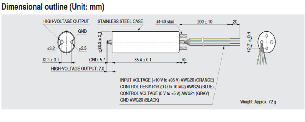 HAMAMATSU滨松 高压电源模块 C12733-04 详细参数 类型 紧凑型 输入电压 +10 至 +35 V 输入电流(无负载)典型值 30 mA 输入电流(满载)典型值 90 mA 最大值 输出电压 +500 至 +1800 V 最大值 输出电流 0.09 mA 规格保证输出电压范围 +500 至 +1800 V 线路调节 ±0.2% 负载调节 ±0.1% 波纹/噪声 100 mV 温度系数 ±0.005%/°C 工作环境温度 -40 至 +175 °C 工作环境湿度 80% 以下 储存温度 -55 至 +70 °C 储存湿度 80% 以下 尺寸 (W x H x D) φ22.2 × 85.4 mm 重量 72 g 0755 84689265 手机/微信:18320955412 QQ:2423332841 邮箱:2423332841@qq.com ...