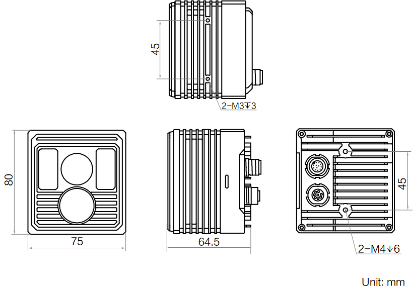 | 数字I/O | 12-pin M12接口提供供电和I/O,3路光耦隔离输入(Line 0/3/6),3路光耦隔离输出(Line 1/4/7) | |