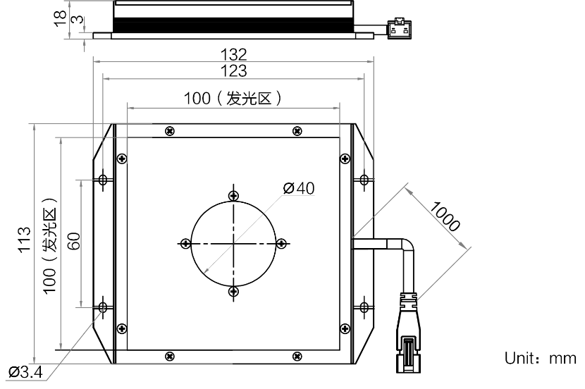 | 发光区尺寸 | 100 mm × 100 mm | |