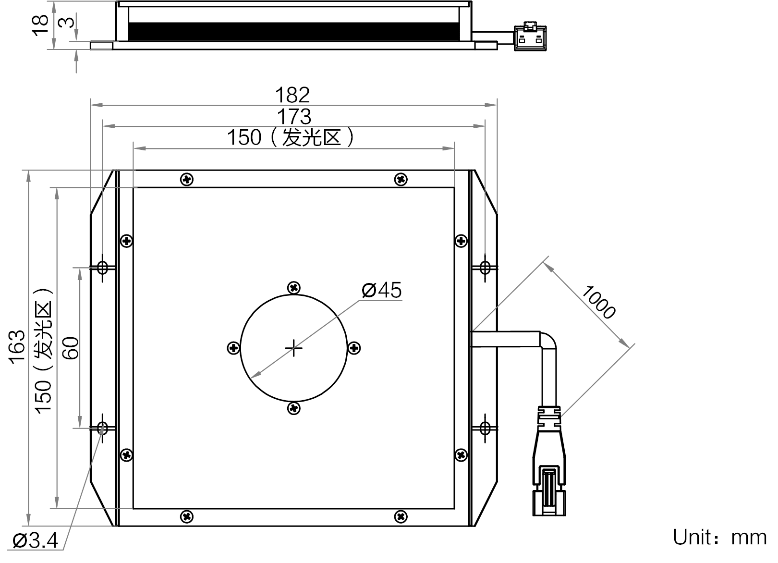 | 发光区尺寸 | 150 mm × 150 mm | |