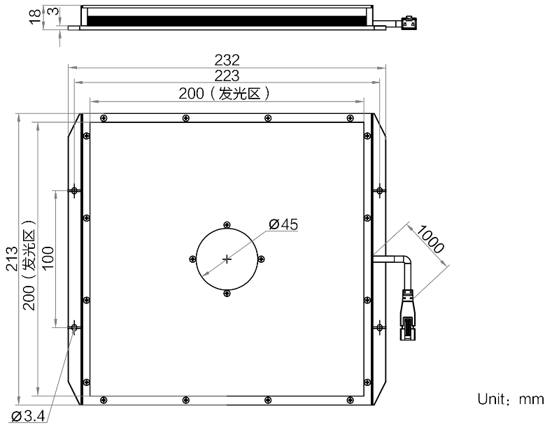 | 发光区尺寸 | 200 mm × 200 mm | |