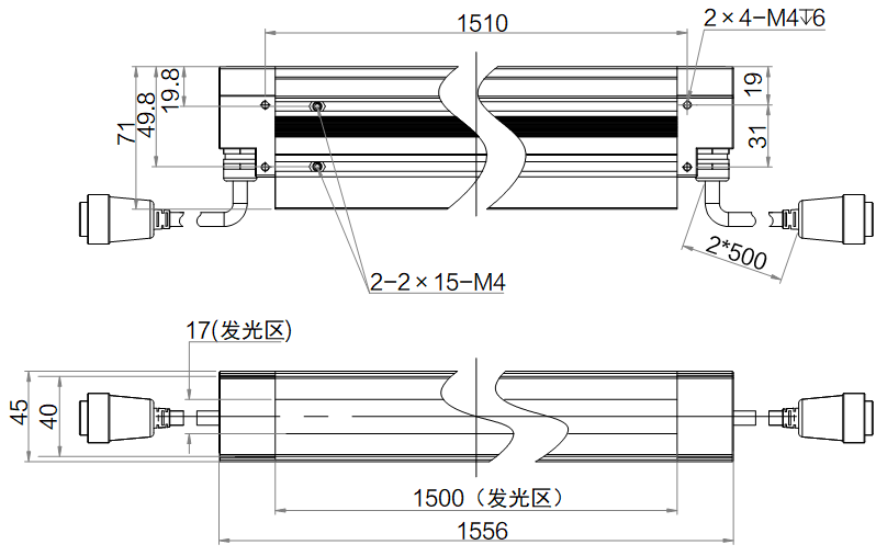 | 发光区尺寸 | 1500 mm × 17 mm | |