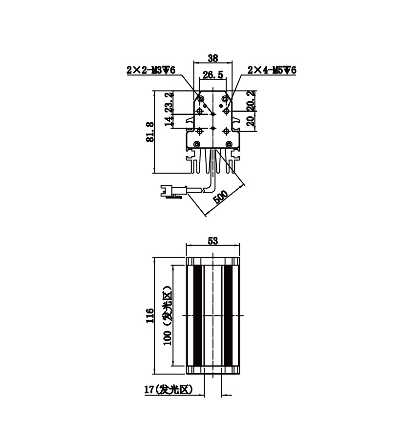 | 发光面尺寸 | 100 mm × 17 mm | |