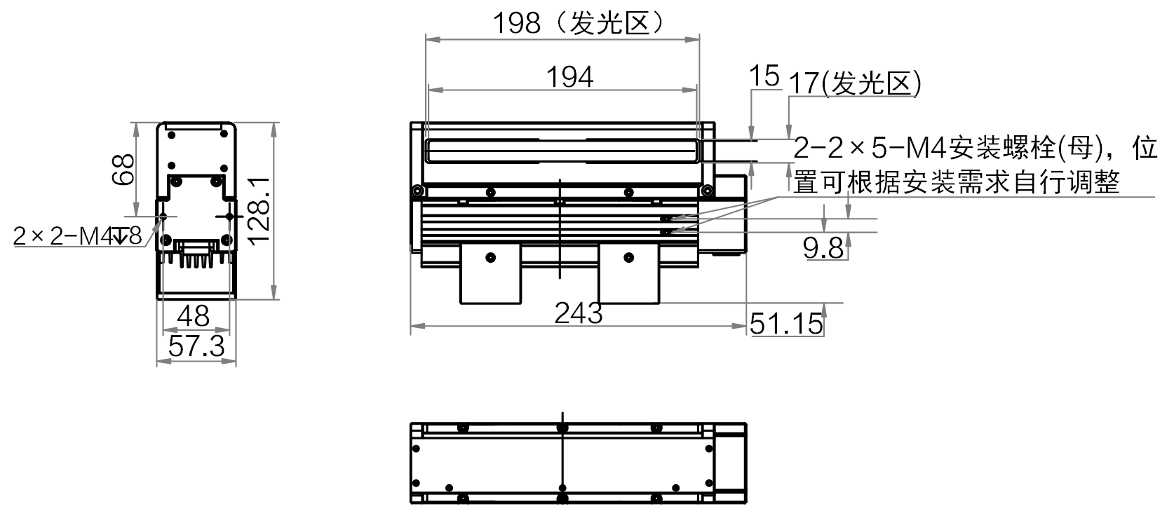 | 发光面尺寸 | 198 mm × 17 mm | |