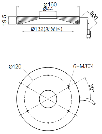 HIKROBOT海康机器人 MV-LGES-160-W 平面无影光源 功能特性 结构简洁,紧凑,易安装 特殊漫射板产生均匀高角度光效 型号 型号 MV-LGES-160-W 名称 平面无影光源MV-LGES-160-W 性能 颜色 White 波长 / 色温 6000~7000K 电气特性 接口类型 SMR-03V-B 功率 6.5 W 结构 供电线长度 500 mm 灯珠排数 1 外形尺寸 Φ160 mm × 19.5 mm 外形直径 Φ160 mm 开孔孔径 Φ44 mm 发光区尺寸 Φ132 mm 湿度 20~85%RH无冷凝 温度 工作温度0~40°C,储藏温度-20~60°C 漫射板 标配 手机/微信:18320955412 电话:86 0755 84689265 QQ:2423332841 邮箱:2423332841@qq.com ...