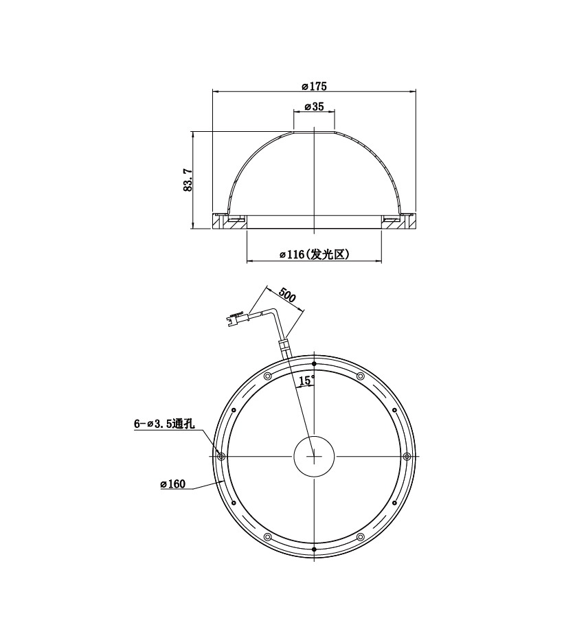 | 发光区尺寸 | Φ116 mm | |