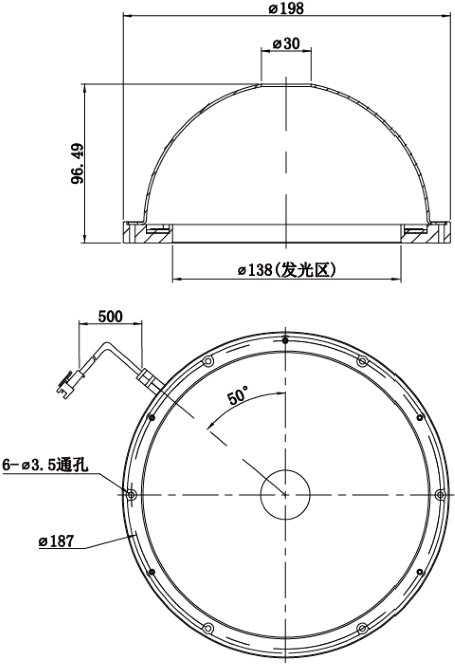 特殊工艺的半球形漫射壁,漫射光效均匀性好