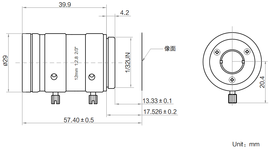 | 像面尺寸 | Φ11.2 mm(2/3'') | |