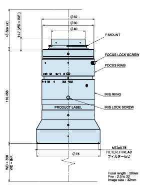 MORITEX 茉丽特 ML-2825M-32M52 线扫镜头 产品描述 规格 规格 ML-2825M-32M52 焦距 (mm) 28 倍率 x ∞ - 0.081 WD(mm) ∞ - 300 Fno 2.5 - 22 AR 镀膜 Vis-NIR 重量(g) 762 芯片大小(mm) 32 接口 M52 手机/微信:18320955412 电话:86 0755 84689265 QQ:2423332841 邮箱:2423332841@qq.com