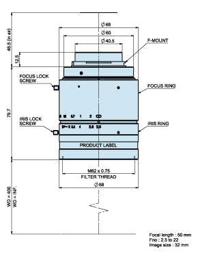MORITEX 茉丽特 ML-5025M-32F 线扫镜头 产品描述 规格 规格 ML-5025M-32F 焦距 (mm) 50 倍率 x ∞ - 0.127 WD(mm) ∞ - 400 Fno 2.5 - 22 AR 镀膜 Vis-NIR 重量(g) 556 芯片大小(mm) 32 接口 F 手机/微信:18320955412 电话:86 0755 84689265 QQ:2423332841 邮箱:2423332841@qq.com