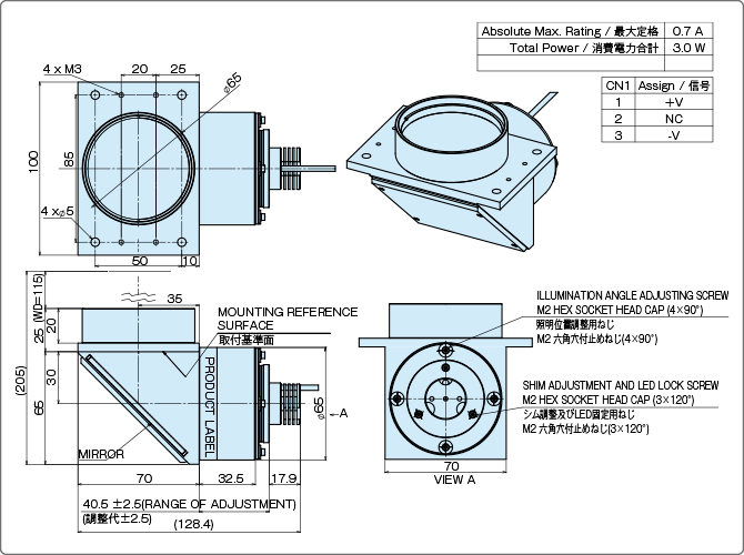 *1 镜头长度包括LED照明元件及可调整长度公差,根据LED的不同最大可调整12.5mm.