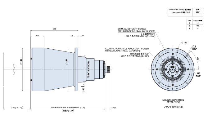 *1 镜头长度包括LED照明元件及可调整长度公差,根据LED的不同最大可调整12.5mm.