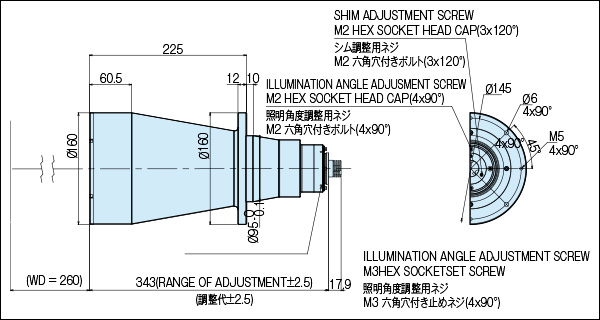 *1 镜头长度包括LED照明元件及可调整长度公差,根据LED的不同最大可调整12.5mm.
