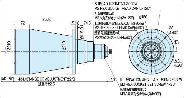 *1 镜头长度包括LED照明元件及可调整长度公差,根据LED的不同最大可调整12.5mm.