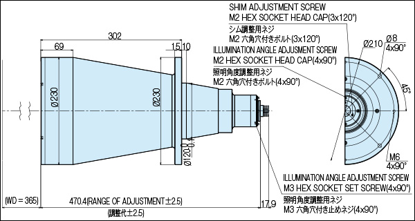 *1 镜头长度包括LED照明元件及可调整长度公差,根据LED的不同最大可调整12.5mm.