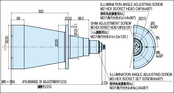 *1 镜头长度包括LED照明元件及可调整长度公差,根据LED的不同最大可调整12.5mm.