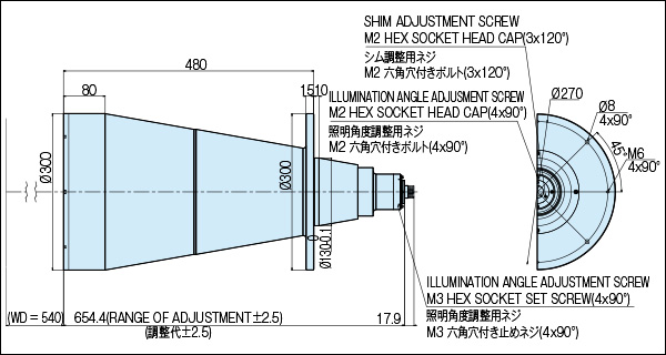 *1 镜头长度包括LED照明元件及可调整长度公差,根据LED的不同最大可调整12.5mm.